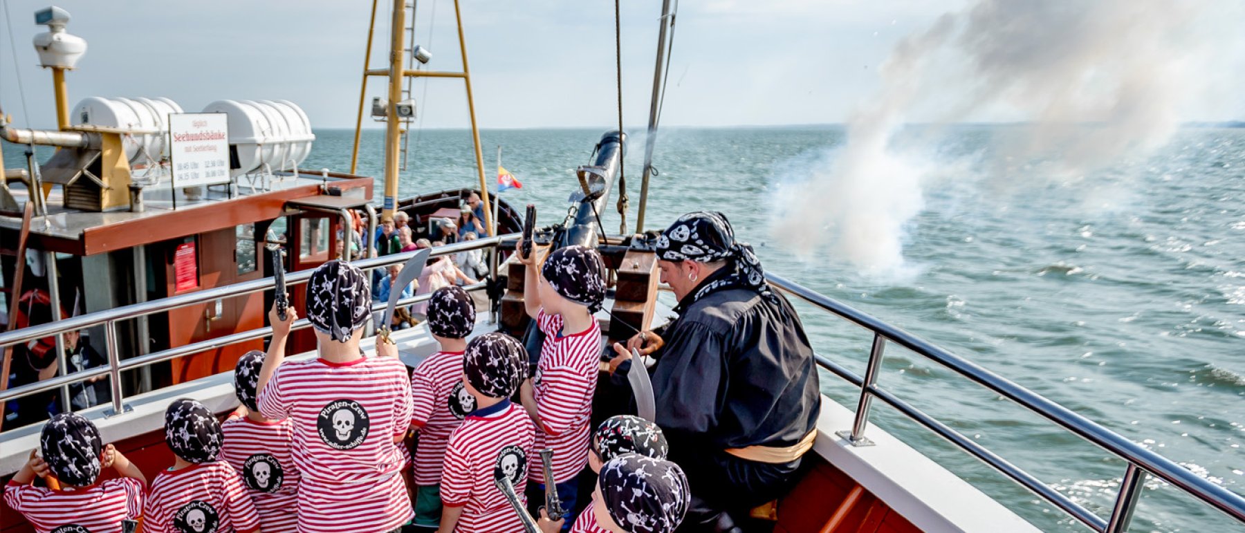 Die Piratenfahrten von Adler-Schiffe ab List auf Sylt sind ein besonderes Highlight für Familien. Diese Fahrten bieten ein unterhaltsames Piratenabenteuer auf See, ideal für Kinder im Alter von 4 bis 8 Jahre. Die kleinen „Seeräuber“ erleben aufregende Spiele und Aktivitäten an Bord, eingebettet in die malerische Kulisse der Nordsee.
