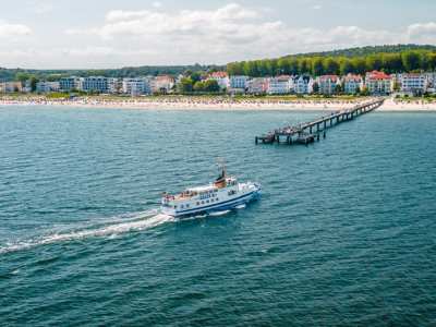 Ab Peenemünde aus startet täglich eine Schifffahrt entlang der Küste Rügens mit Anlandungen in den drei bekannten Ostseebädern Göhren, Sellin und Binz. Die Fahrt bietet die Möglichkeit, einen Tagesausflug auf Deutschlands größter Insel zu unternehmen und die Seebäder mit ihrer Bäderarchitektur, den Seebrücken und den Strandpromenaden individuell zu erkunden.
