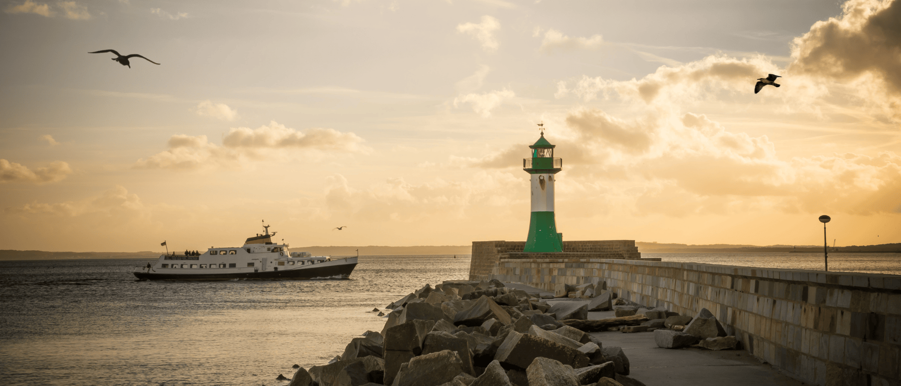 Die Rund-um-Rügen-Schifffahrt bietet eine einzigartige Möglichkeit, die vielfältige Landschaft und Natur der größten deutschen Insel aus einer neuen Perspektive zu erleben. Gehen Sie an einem der vier Anleger in Sassnitz, Binz, Sellin oder Göhren an Bord und genießen Sie eine ca. 10-stündige Rundfahrt um die Insel. Ein sachkundiger Reiseleiter begleitet die Tour und gibt Ihnen interesssante Einblicke in die Geschichte und Natur Rügens. Während der Fahrt geht es entlang der Halbinsel Mönchgut in den Greifswalder Bodden und direkt durch den Strelasund, die Meerenge zwischen der Insel Rügen und dem Festland und unter der imposanten Rügenbrüche hindruch. Hier haben Sie einen guten Blick auf die Silhouette der alten Hansestadt Stralsund, bevor es weiter Richtung Hiddensee mit dem bekannten Leuchtturm Dornbusch geht. Die letzten Highlights der Route sind das Kap Arkona und die berühmten Kreidefelsen vom Jasmunder Nationalpark, welche sich vom Wasser aus besonders gut bestaunen lassen. Die Fahrt endet wo sie begann und Sie gehen mit unvergesslichen Eindrücken von Bord.