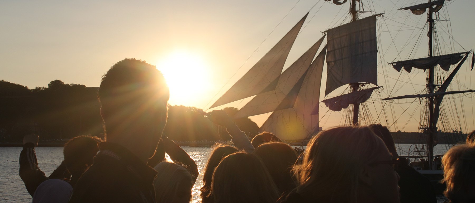 Bestaunen Sie während der Begleitfahrt zur Windjammerparade die Segelschiffe von Bord aus und genießen Sie einen tollen Tag auf der Kieler Förde!